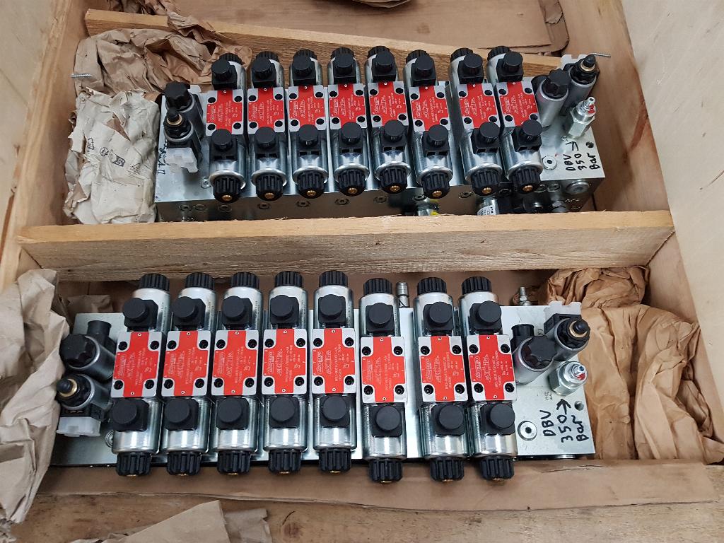 - Ein Mengenteiler sorgt für den Gleichlauf der vier Hebezylinder